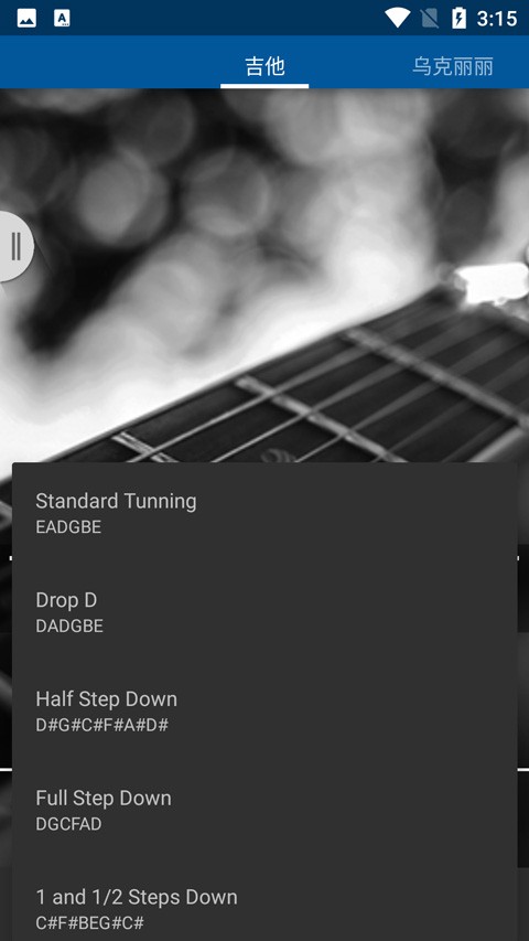 2、乐器调音功能,可模拟吉他、乌克丽丽、四弦/五弦/六弦贝斯、小提琴等多种乐器,能够对这些乐器进行调音及试音操作。