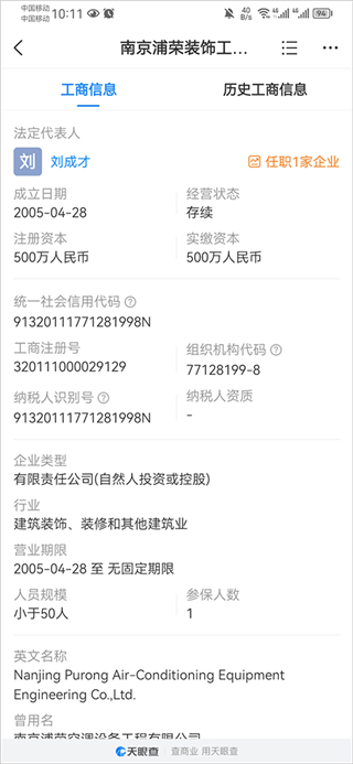 2、进入该企业详情界面后,将页面下拉并点击工商信息