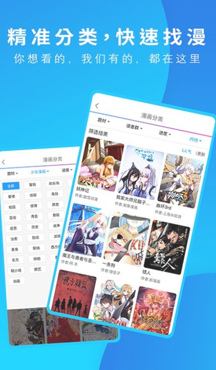 1、所有的漫画进行个性分类,想看的漫画一键搜索,让你追漫更是轻松