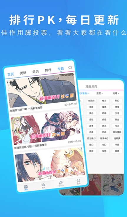 漫画之家app安卓版可以找到各种的热门免费漫画资源,并且对其进行了详细的资源分类,各种的漫画都支持快速下载到本地来进行观看,并且每天都会随时快速更新连载,有需要的话就快来下载使用吧。
