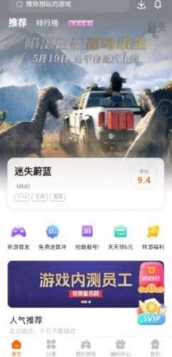 3、首页实时为用户推送当前比较热门的游戏,可以去查看分类,快速找到自己想玩的。