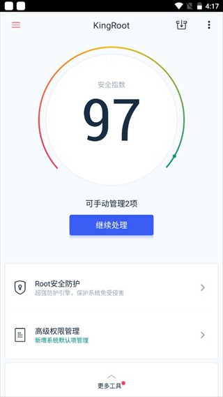 KingRoot官方版作为一款手机管理工具,能有效解决手机发热问题,保障系统安全升级;root升级方案通过云端推送,用户只需简单几步即可快速获取root权限,软件装卸便捷,具有操作简单、步骤清晰、支持多品牌手机等优势,为用户提供优质服务,且使用安全免费,感兴趣的用户可前往本站安装体验!