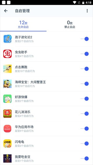 1、在这里对自启动软件进行设置与控制,都能直接实现管理; 2、拦截软件间的相互唤醒,可带来更优质的使用体验。