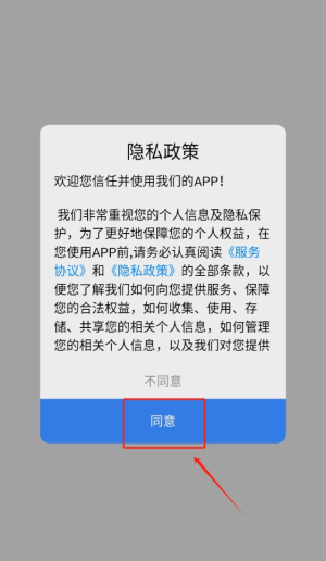 1、首先点击同意按钮,顺利进入应用界面,以便开始使用各种功能。