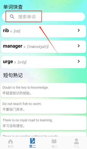 1、单词快速查询功能,用户只需简单输入,就能即时搜索到目标英语单词,并查看其详细中文释义,助力用户更深入地掌握词汇。