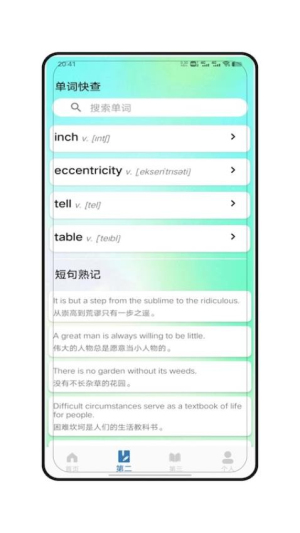 1、单词快速查询功能,用户只需简单输入,就能即时搜索到目标英语单词,并查看其详细中文释义,助力用户更深入地掌握词汇。
