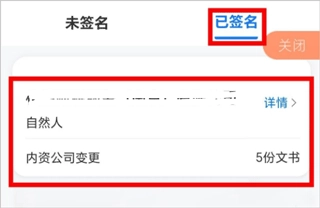 10、在“已签名”页面可以看到办理公司数据信息,签名任务全部完成。
