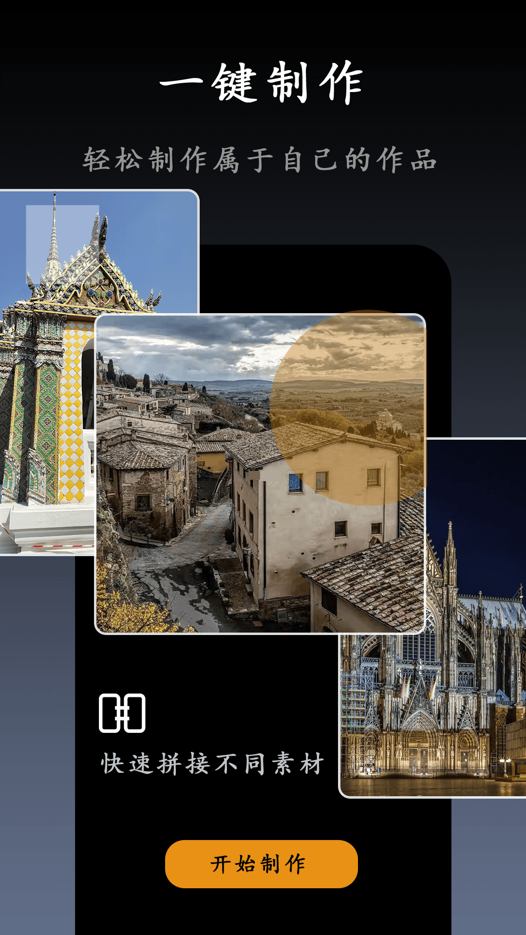 拼接:将多个视频片段拖拽到时间轴上,进行拼接操作,创建完整的视频。