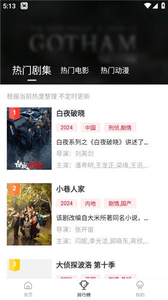 3、排行榜页面会定期更新,展示当前热门的剧集。