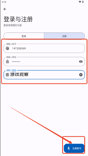 3、然后输入账号密码,昵称之后,点击“注册账号”即可。