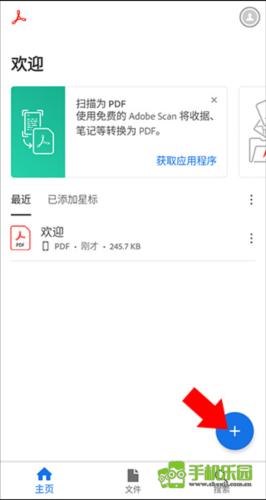 2、进入首页后,如果想要打开、创建pdf文档,可点击右下角“+”号