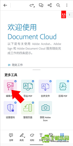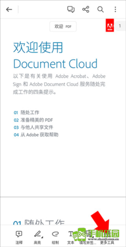 4、打开pdf文件后,如果想要编辑pdf内容,那么点击右下角的更多工具