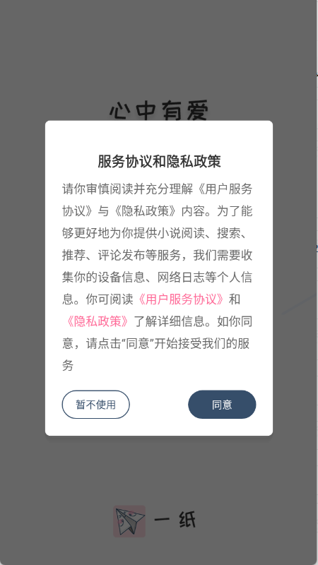 1、用户首先在3G游戏网一纸小说,查看并同意隐私政策与用户协议。