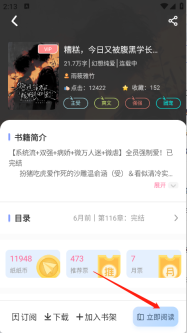 5、打开你感兴趣的小说,进入它的详情页面后,点击“立即阅读”按钮。