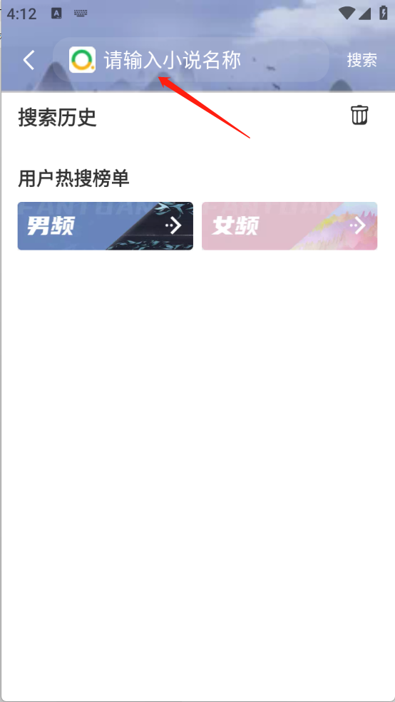 1、进入首页之后选择性别方便为用户精准推荐小说资源。