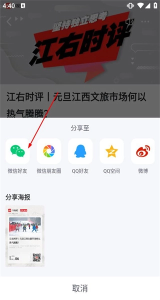 4、在分享界面里找到微信好友选项并点击,就能把这篇江右时评的文章分享给相应的微信好友。