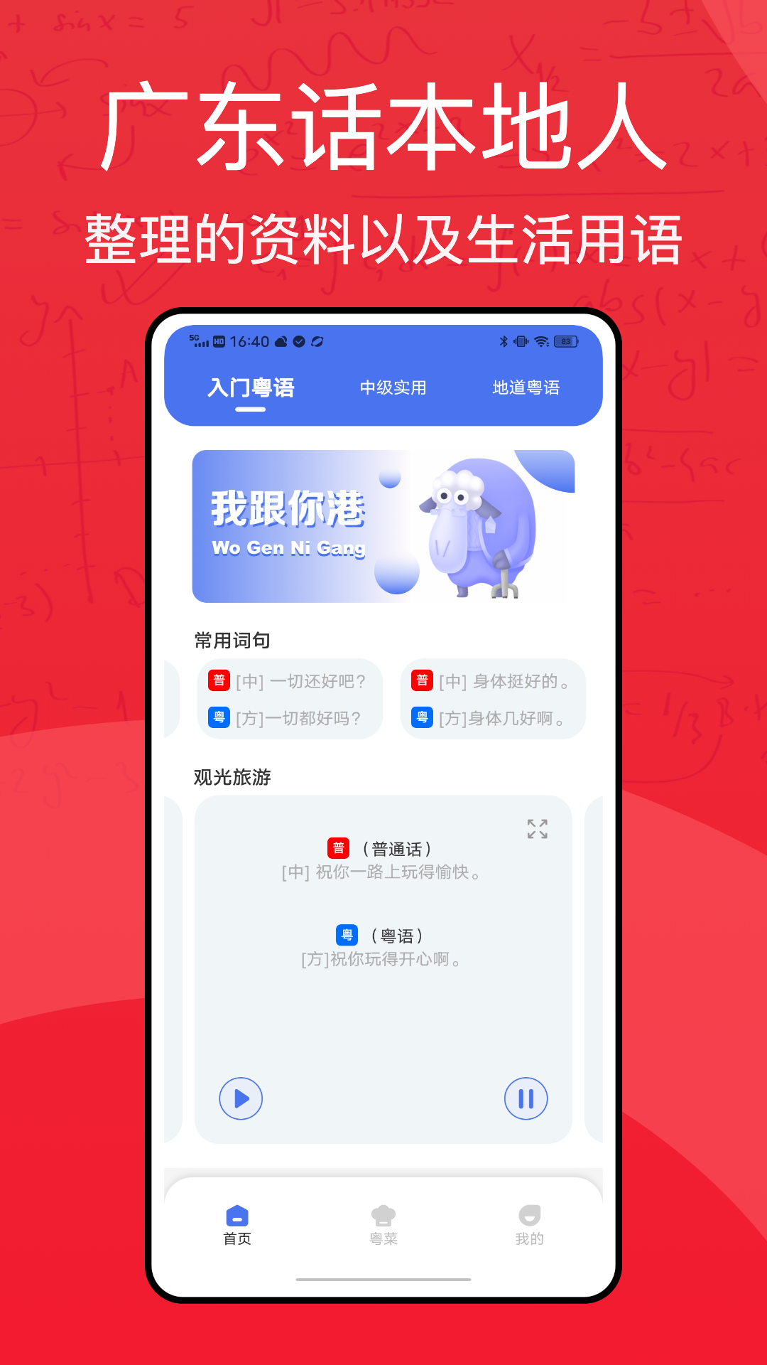 1、每日一题:每天更新一句日常生活实用粤语,听语音分辨句子。
