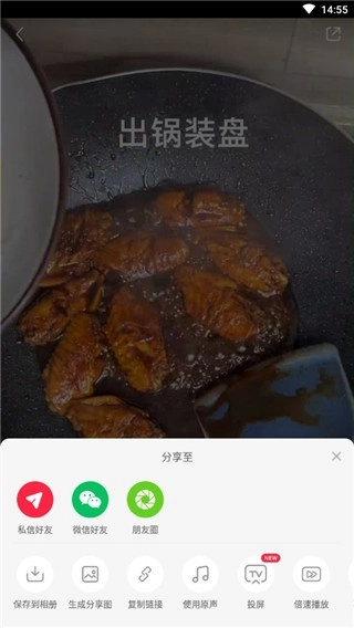6、要是有喜欢一起做美食的朋友,也可以点击右上角分享给他,一同观看制作过程。