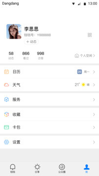 铛铛App是一款社交软件,可以让用户在软件中与好友通讯,加入社群来与大家一起聊天,在软件中可以通过”公众圈“来实现许多层次社交的连接,也可以创建个人有的圈子,与企业家互动,也能通过”附近“的功能来查看社区的内容。不仅如此,铛铛App也融合了手机日历提醒,查看天气气候以及全天步数等多项功能。