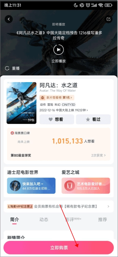 2、进入之后点击下方的立即购票。