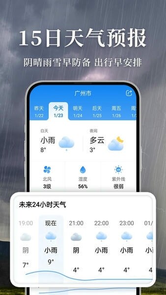 3.天气预警提醒:软件提供天气预警功能,及时提醒用户可能出现的恶劣天气,确保用户安全。