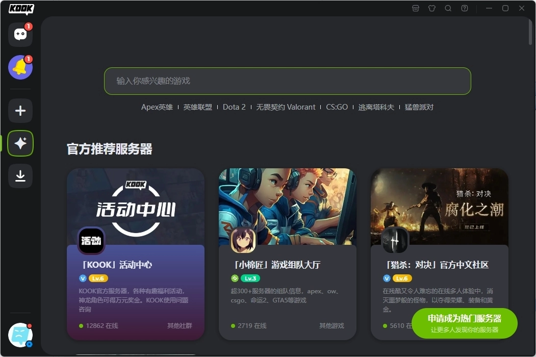 KOOK是一款面向社群与游戏玩家打造的高品质、且完全免费的语音沟通工具。它具备高保真音质、出色的稳定性以及低资源占用的特点,用户能够在此创建带有个性化主题的服务器,邀请好友加入,进行流畅的文字与语音互动。平台支持PC端、网页端和移动端的数据同步,便于用户跨平台交流;同时还提供语音提示、OBS直播插件等额外功能,进一步提升使用体验。KOOK旨在成为游戏爱好者的专属社区,通过屏幕共享、趣味AI等深度服务,为用户营造舒适的交流环境,让游戏过程更加丰富顺畅。