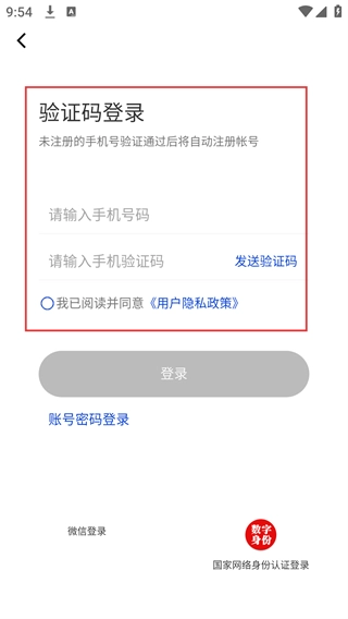 4、在验证码登录页面,输入目标手机号码,点击【发送验证码】并填入收到的短信验证码,点击登录按钮完成操作。