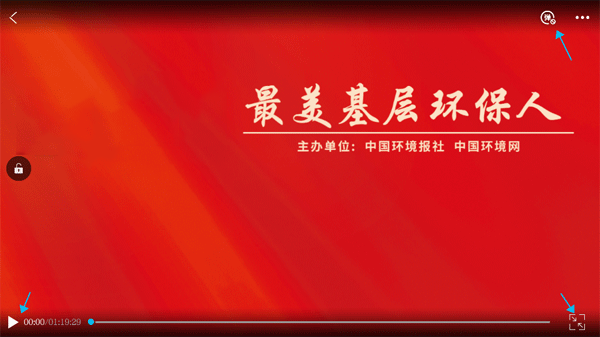 进入直播回放界面后,你可以勾选右上角的“弹”字按钮来开启弹幕;右下角蓝色箭头所指的位置是屏幕缩放控制键;屏幕左右两侧可分别滑动以调节音量和亮度,完成这些设置后就能正式观看直播回放了。
