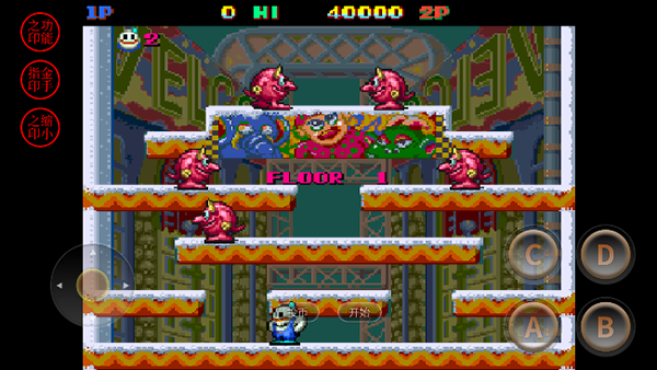 打开《雪人兄弟》游戏,进入主菜单。点击“开始游戏”或“新游戏”按钮,进入游戏选择界面。