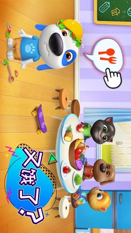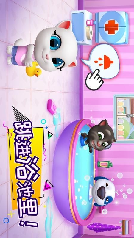 2、轻点“会说话的汤姆猫家族”六位成员头顶的图标,就能给它们喂食、帮它们洗澡。相信你定会成为最出色的主人,而它们也会成为你最棒的宠物伙伴。