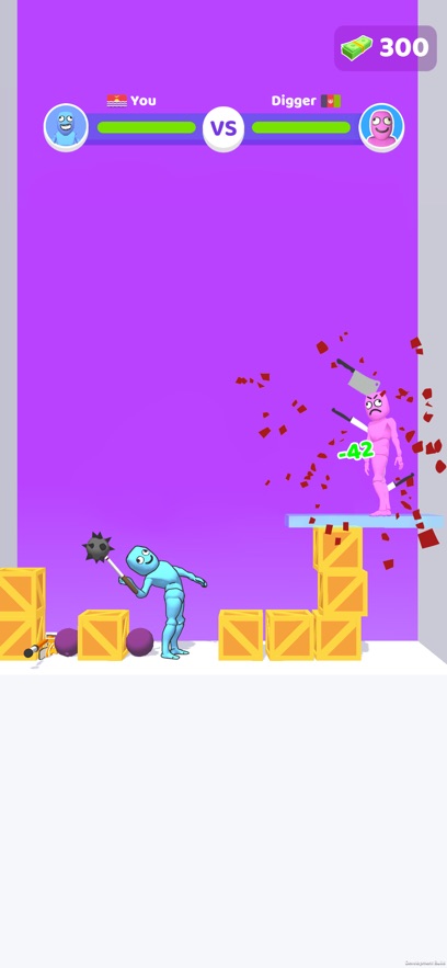 团队竞技:玩家分为两队进行对战,每队有多个小人。通过团队合作,消灭对手的小人。