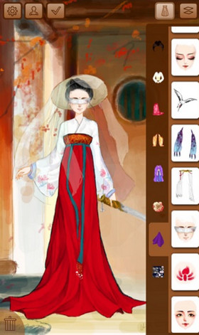 1.通过拖拽衣柜里的服饰,装扮屏幕左边的少女,参与宫廷选修
