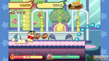 1、超人气动漫角色蜡笔小新惊喜现身,快和这个永远停留在5岁的幼稚园小朋友一起快乐跑酷、挑战关卡吧;
