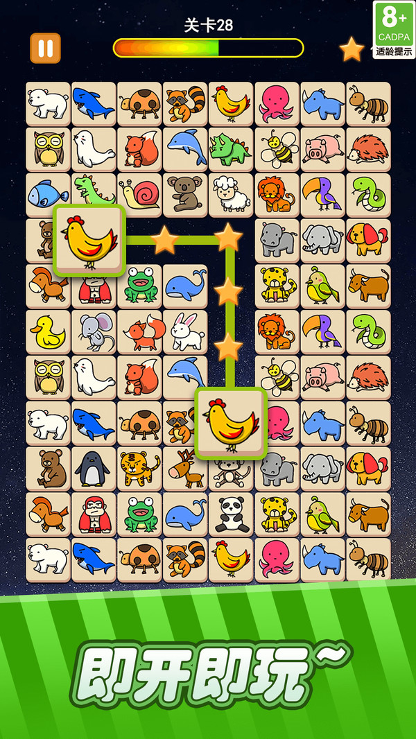 简单易上手:无复杂的操作流程,玩家只需点击两张相同的图标即可消除,非常适合休闲娱乐。