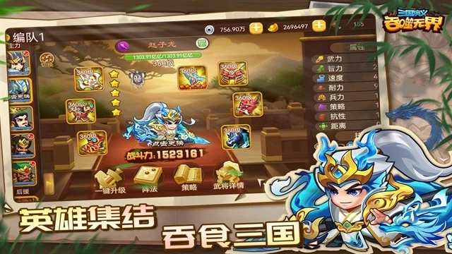 三国演义吞噬无界单机版玩家们可以随时在这里进行挑战,并且各种的历史名将和角色都可以自由的选择,并且还支持采取回合制战斗玩法,并且各种的剧情任务都十分的精彩,感兴趣的话就快来下载试试吧。