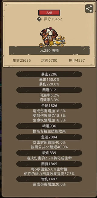 毕业配置推荐:240套装,急速与暴击属性堆到2000点,搭配适量吸血属性确保生存能力,剩余属性点全部投入全能以提升伤害。武器方面优先选择高等级装备来强化前排,毕业武器推荐落日之杖和勇士的靴匕。饰品方面,用狂暴羽毛替换橡木之心;随从则调整为光明使者与黑色幼龙。