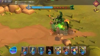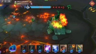 7-7这一关,地精得用“死亡射击”技能来清理,它对防御塔的伤害实在太高了。不用急着去拆对方的防御塔,等把第一波boss解决掉后,再用“大地崩裂”技能清除敌方防御塔,之后直接部署“巨炮破塔队”就可以了。