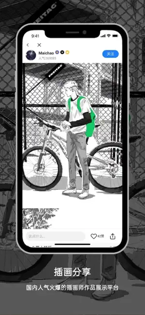 3、随意点击任意一幅作品,就能进入全屏模式进行欣赏,同时还能进行评论、收藏、分享等操作。