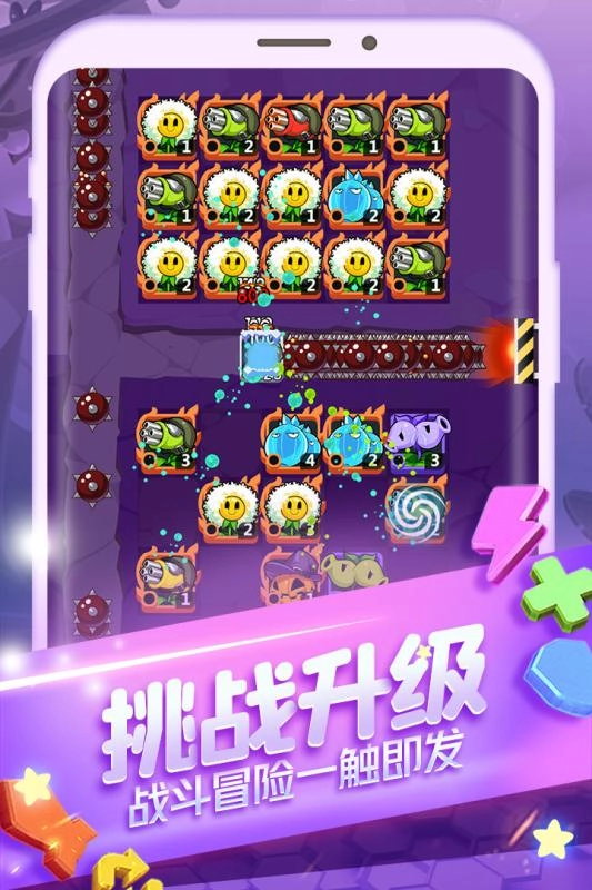 融合升级:通过融合系统,将不同植物组合升级,解锁更强大的植物战士。例如,融合豌豆射手和寒冰射手,可以解锁冰冻豌豆射手,具有更高的输出和控制能力。