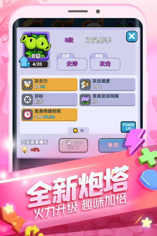 升级植物:收集足够的资源,升级植物的等级,提升其属性和技能效果。