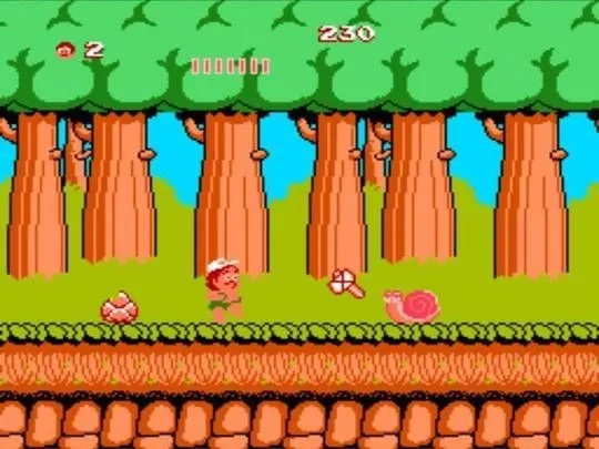冒险岛有个很有创意的设定:在这片荒岛上,填饱肚子可是头等大事——不管是吃水果还是拿到奶瓶,都能帮你增加体力值。不过要是不小心撞到碎石(也就是绊脚石),体力值会稍微减少一点。另外,有些蛋里藏着饿鬼,它们会在一段时间里慢慢消耗你的体力:要是你体力值还比较多,它会把你耗到大概两格左右;可要是体力本来就少,它能直接把你耗光,那角色可就饿死啦。尤其是在荒山这种地形,水果本来就少,饿鬼却挺多,所以在这儿冒险可得特别小心。