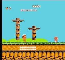4. 关于隐藏蛋 游戏里的特定位置藏有隐藏蛋,在这些位置跳跃就能让它出现(是下蛋吗?)。隐藏蛋里装的全是宝物,虽然平时看不见,但要找到它也不难——在移动过程中,如果发射子弹时发现子弹打到一半就消失了,那就可以到这个位置跳一下,把隐藏蛋取出来。 5. 无限接关技巧 在第一区域第一小关的最后崖边跳起来,拿到隐藏宝物“蜜蜂”。之后在游戏中途死亡,屏幕显示“GAMEOVER”的标题画面时,同时按下方向键的任意一个方向和START键,就能继续接关了。