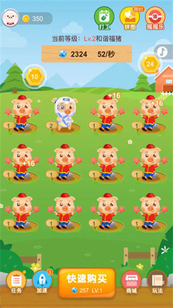 3、轻松的召唤与合成玩法,在明媚阳光的陪伴下,从养猪开启娱乐放松时光。拥有阳光养猪场,再也不用担心缺猪肉啦。