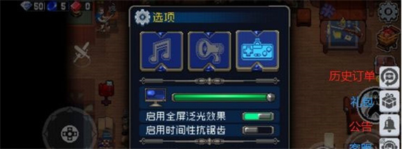 8、点击游戏页面右上角的齿轮按钮,进入【设置选项】页面。