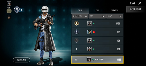 《绝地求生2未来之役国际服最新版》的排名系统可呈现第1至第500名的玩家,其排名由生存者的游戏得分来决定。