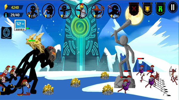 3、你需要尝试使用大量的金币来提升自己的火柴人军队,快来试试;