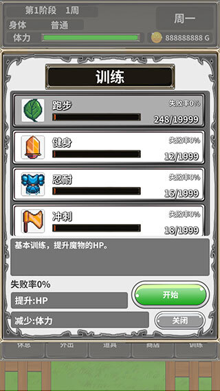 在为期一周的养育阶段里,每天有8次操作机会,总共56回合内,要完成对蛋中孵化出的魔物的培养工作。