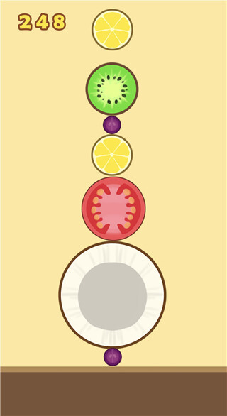 3、游戏设有物理碰撞机制,当两个相同水果距离很近却未合成时,可借助下一个水果的排挤、碰撞来促使它们合成为更大的水果;也能运用反射原理,让抛出的水果改变运动方向,从而抵达难以直接垂直下落的位置——具体来说,就是利用墙壁和其他水果调整发射方向(这种方法适合填补空隙)。由于游戏规则是只要发生一次碰撞就会触发合成,所以放置水果时要注意避免擦碰到其他水果。