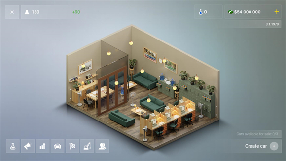 3、创建完成后会进入自己的公司界面,点击右下方的“create car”按钮即可开始组装车辆。