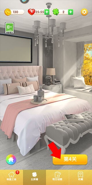3、通过闯关成功获取的幸运草和金币,能够用于房屋装修以及购买更多家具。
